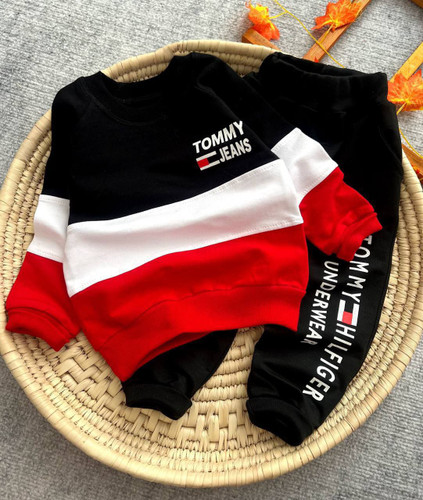 ست بلوز شلوار پسرانه دورس سه نخ پنبه لاکرادار طرح بالنسیاگا سایز 45/50/55/60