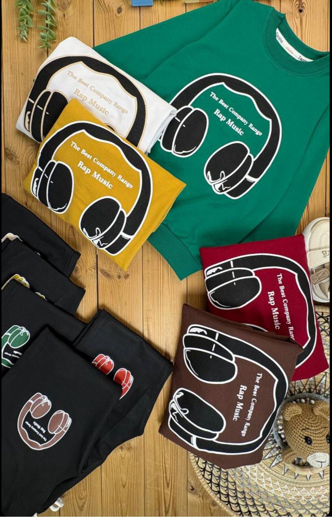 ست بلوز شلوار عیدانه پسرانه طرح هدفون دورس پنبه و گلکسی سایز 50/55