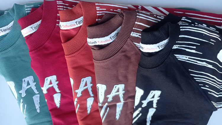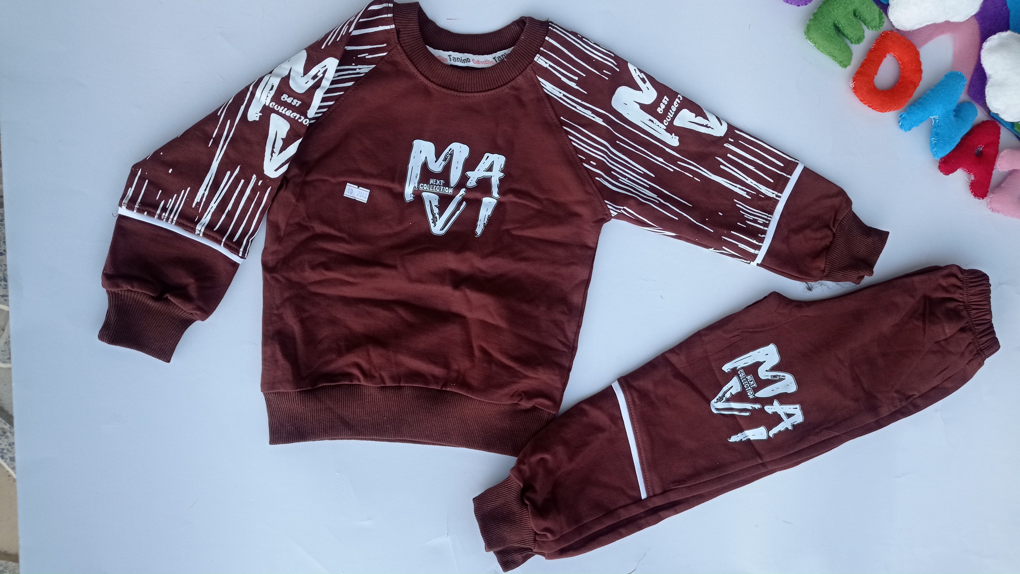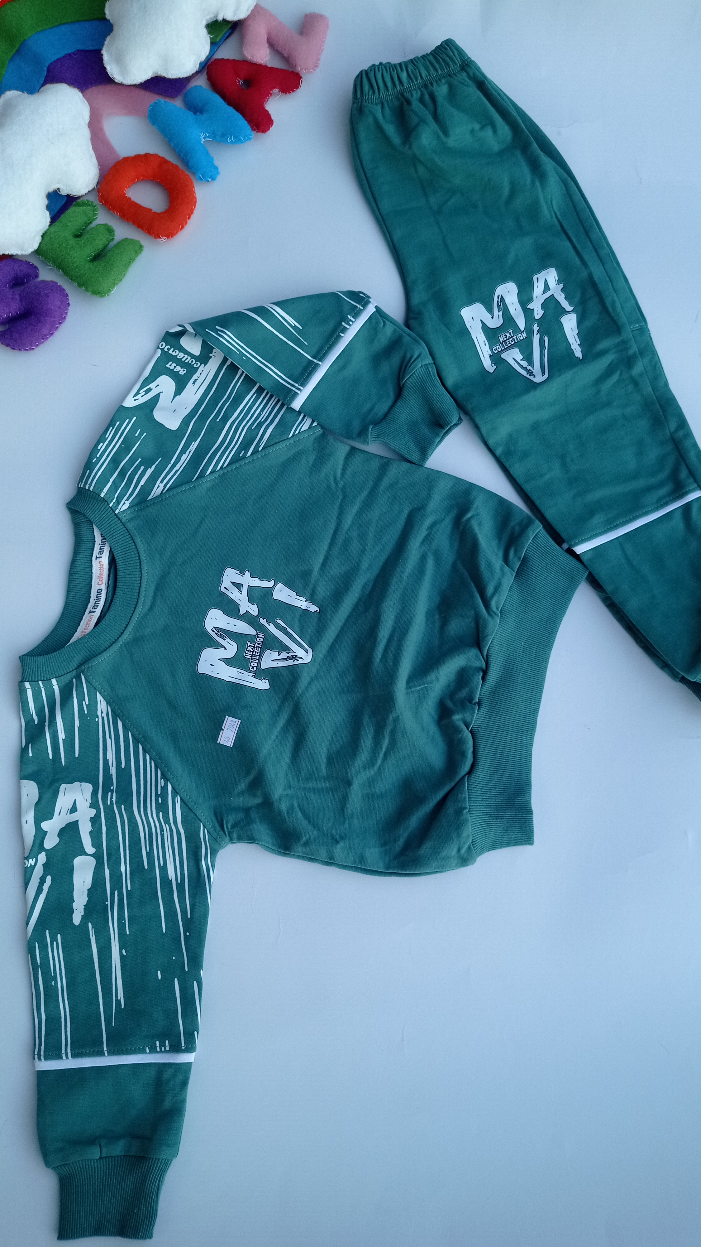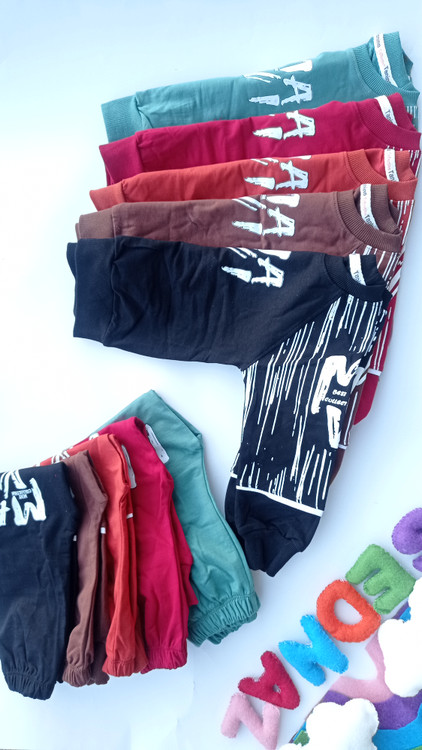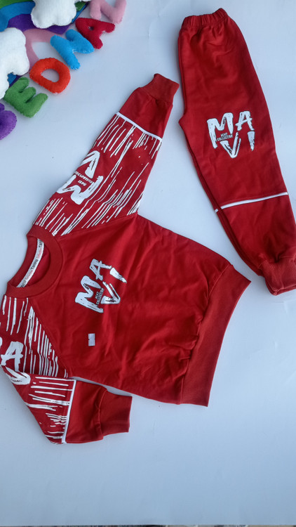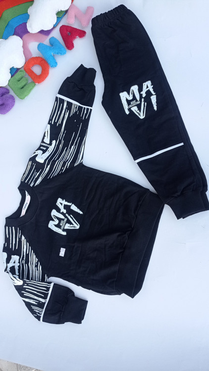 ست بلوز شلوار پسرانه عیدانه ماوی دورس پنبه لاکرادار سایز 40/45