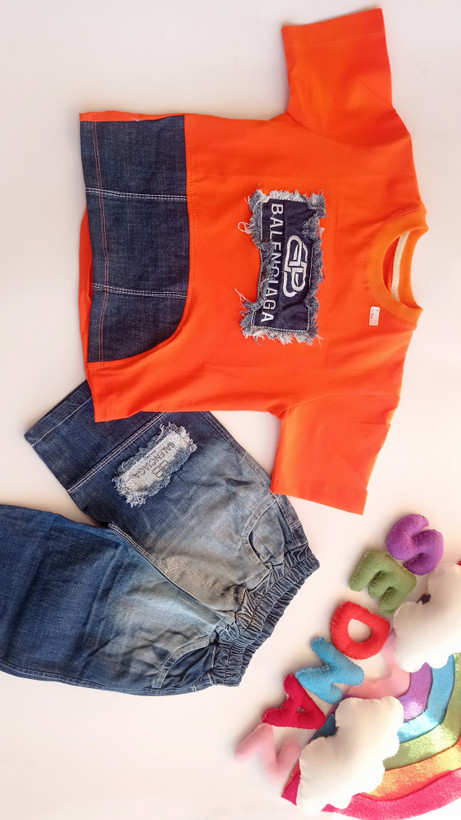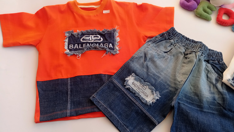 جنس تیشرت از نخ پنبه صددرصد و شلوارک از جین مرغوب و باکیفیت انتخاب شده