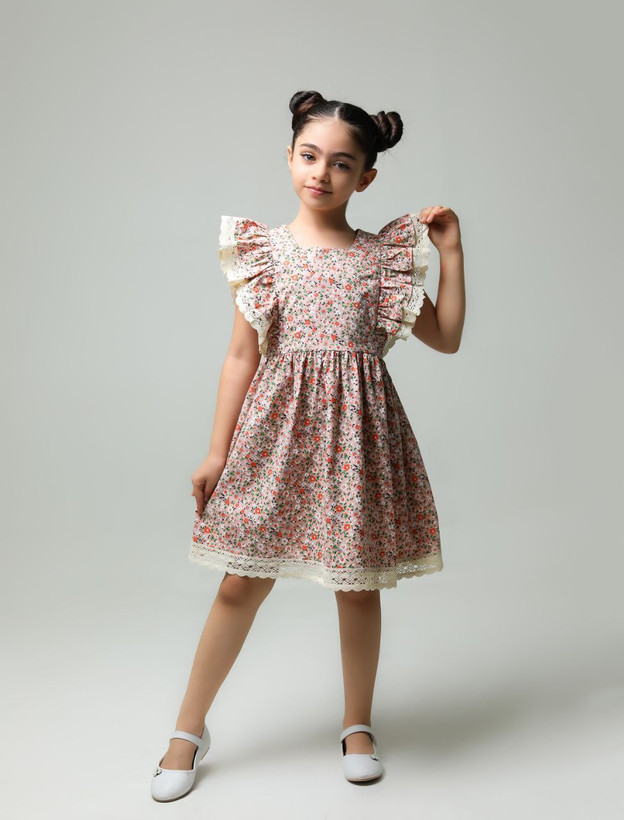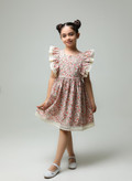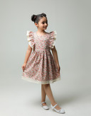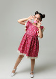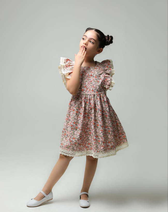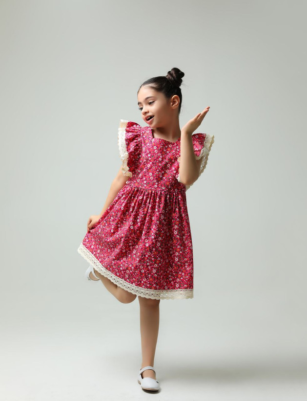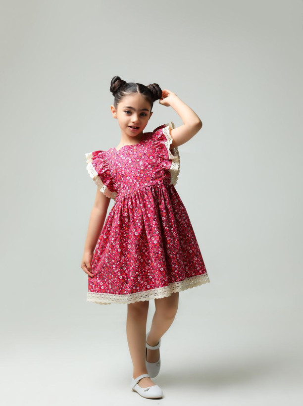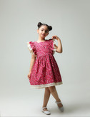 پیراهن عیدانه دخترانه کتان تافته با قلاب بافی رنگ سرخابی و گلبهی مناسب دو تا ۹سال