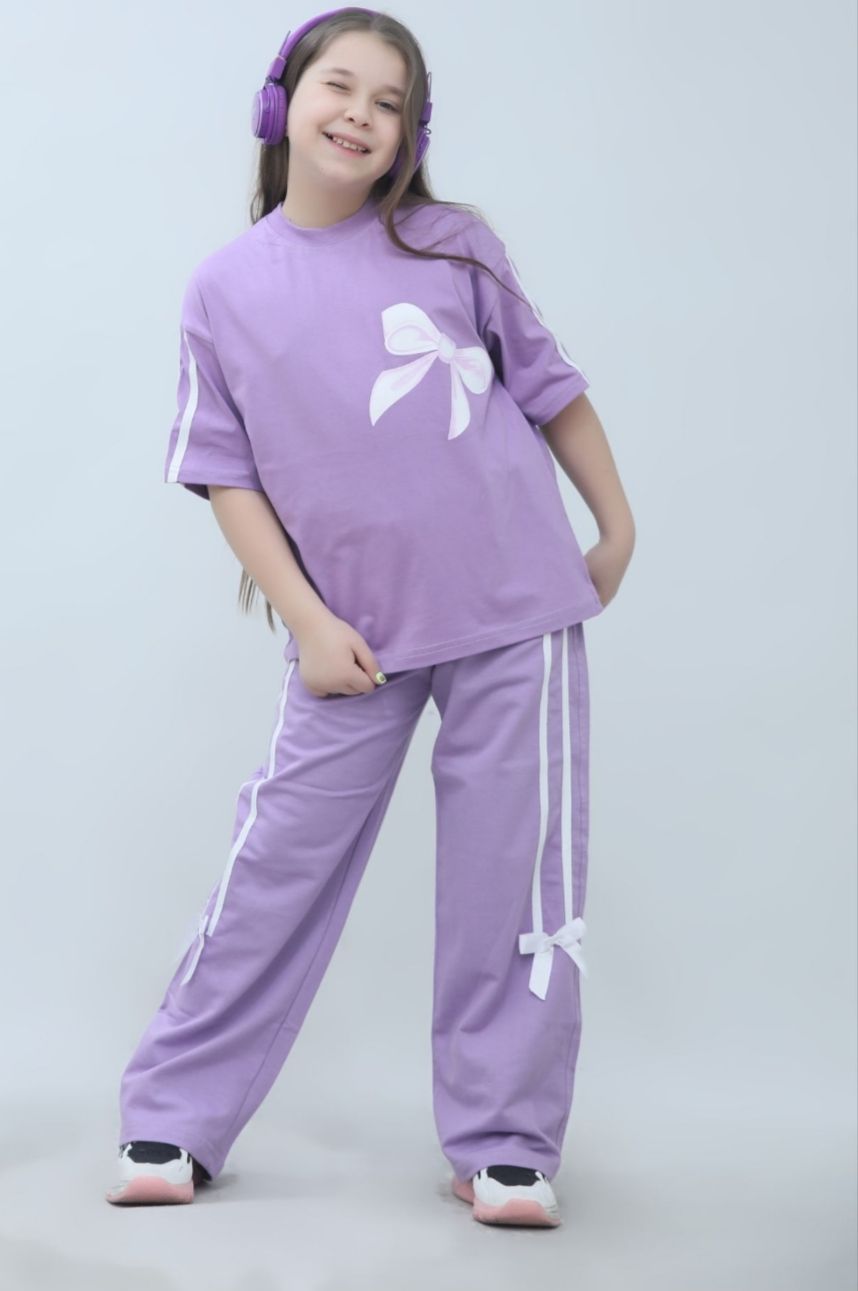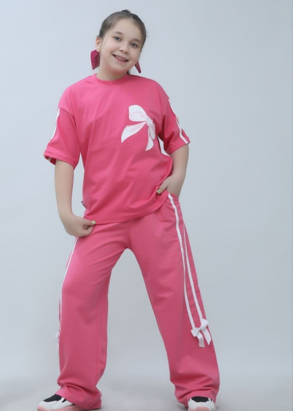 ست تیشرت کراپی و شلوار طرح پاپیون سوپرپنبه اعلا سایز 45 تا 65