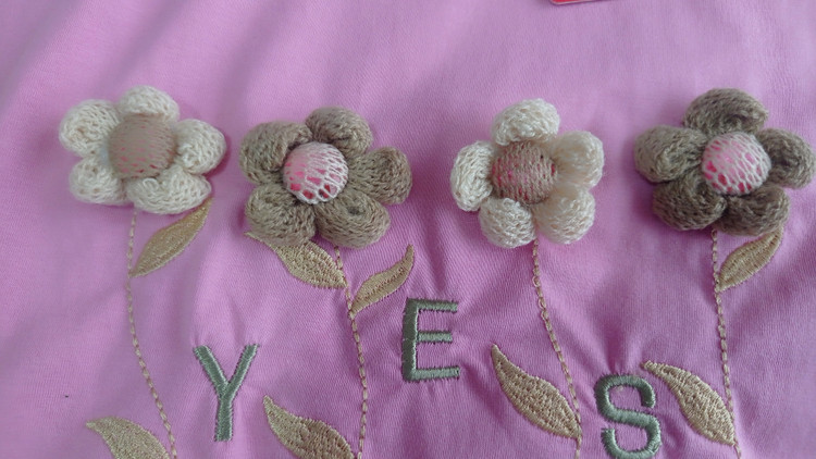 روی تیشرت کاملا تیکه دوزی و گلدوزی شده و اصلا چاپ نداره