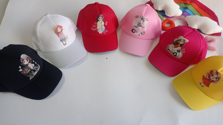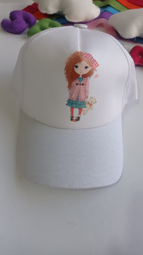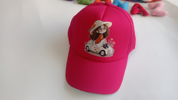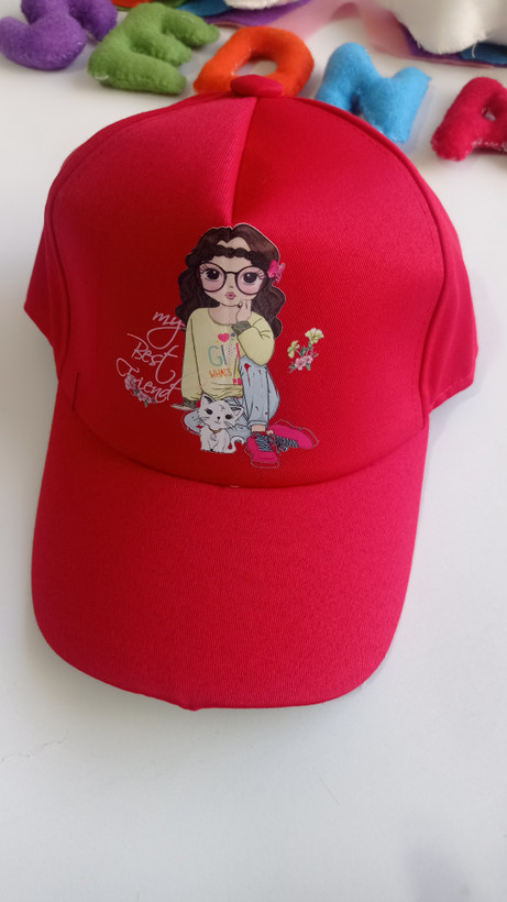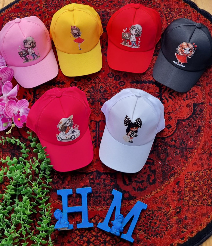 کلاه کپ دخترانه کتان چاپ عروسکی مناسب 2تا9سالگی