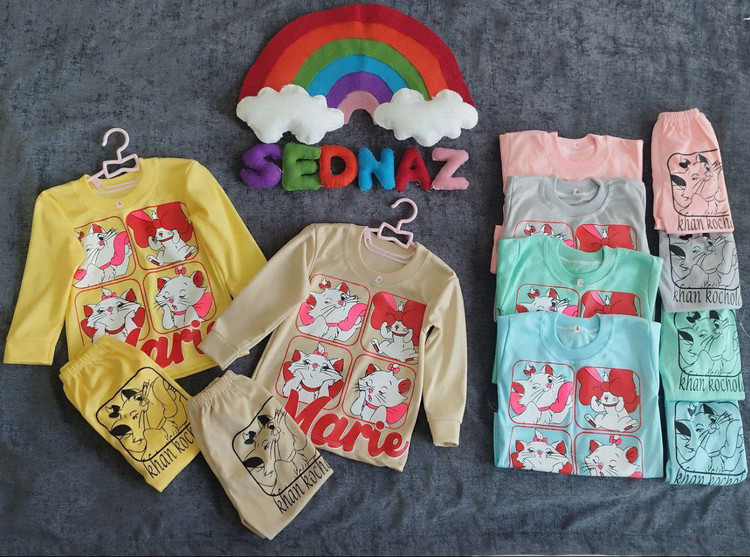 ست بلوزشلوار دخترانه نخی طرح پیشی مری سایزبندی 4/5/6