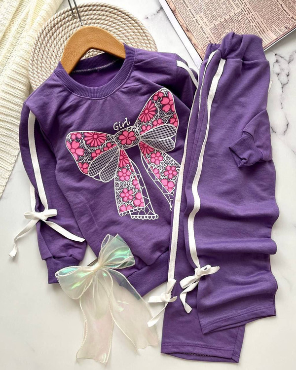 ست بلوزشلوار بنفش پاپیون دورس اسپان سایز40 تا55