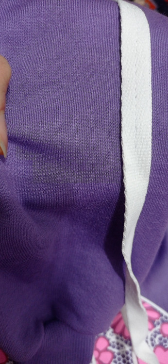 روی آستین و بغل شلوار با نوار دوزی ظریف تزیین شده