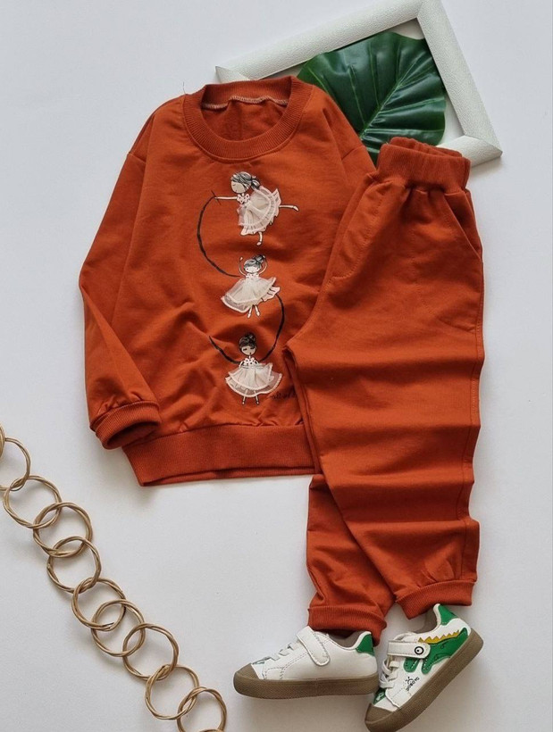 ست بلوز شلوار بالرین آجری دورس لاکرادار سایز 30/35/40/45/50