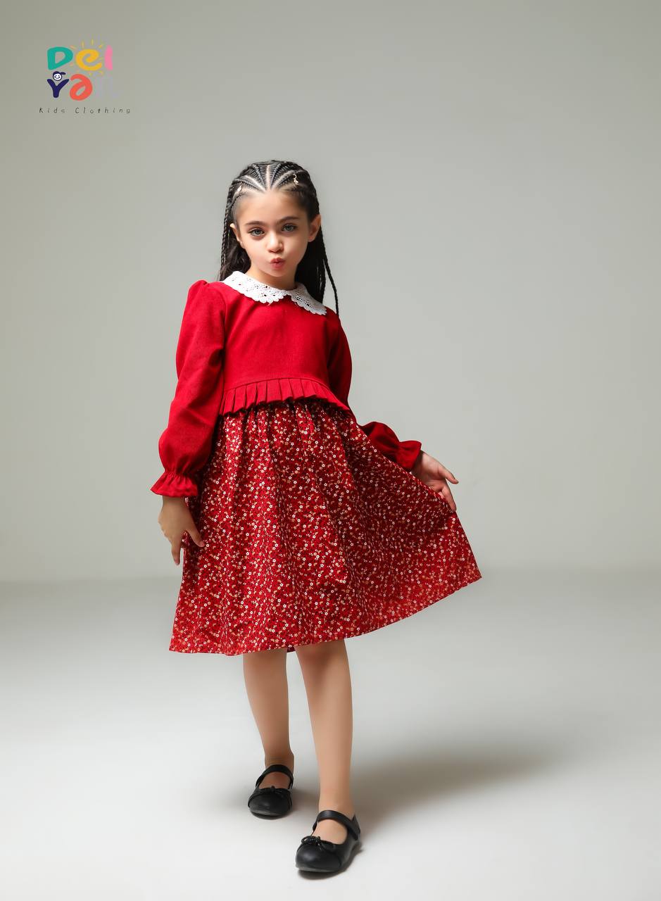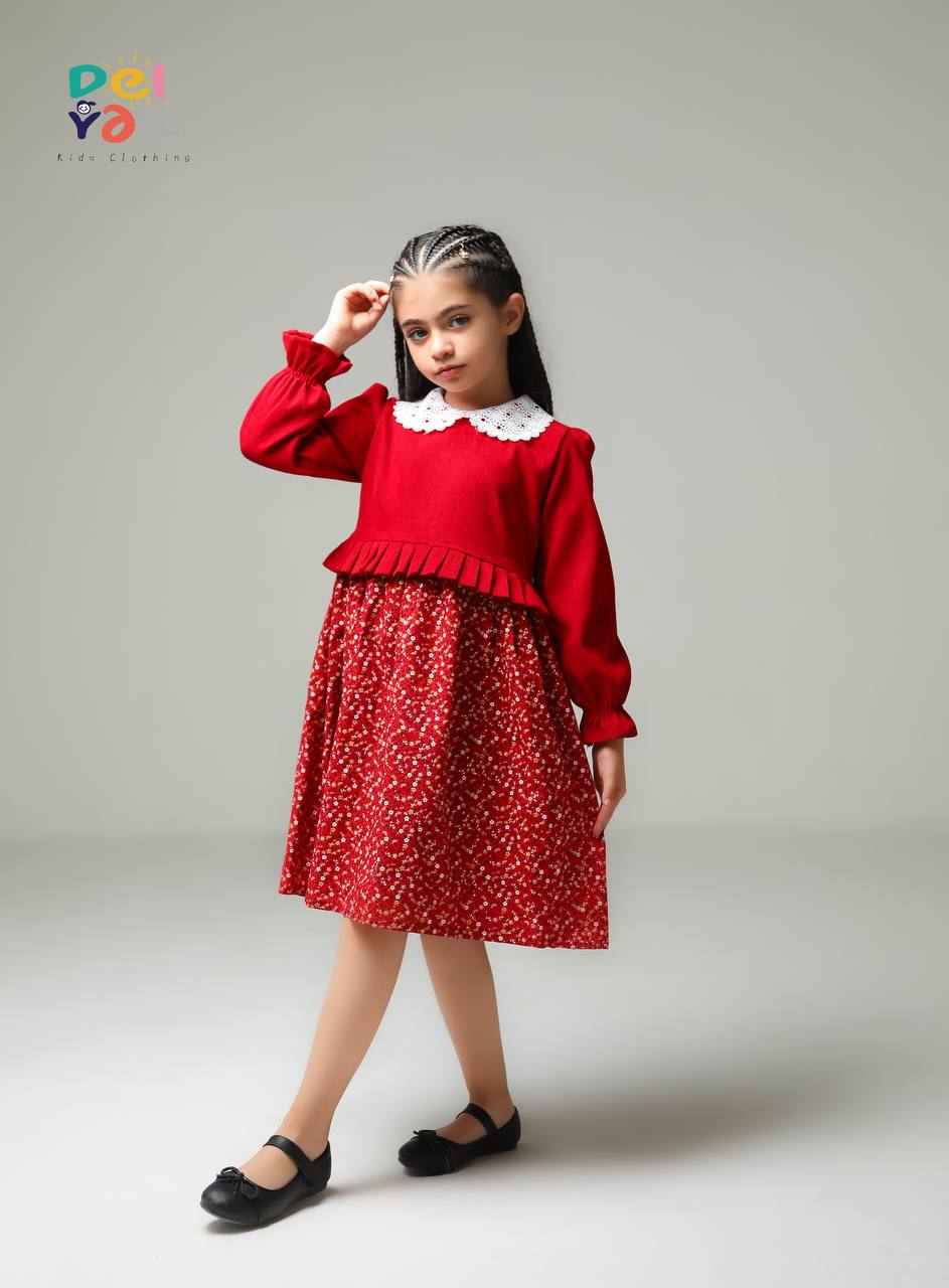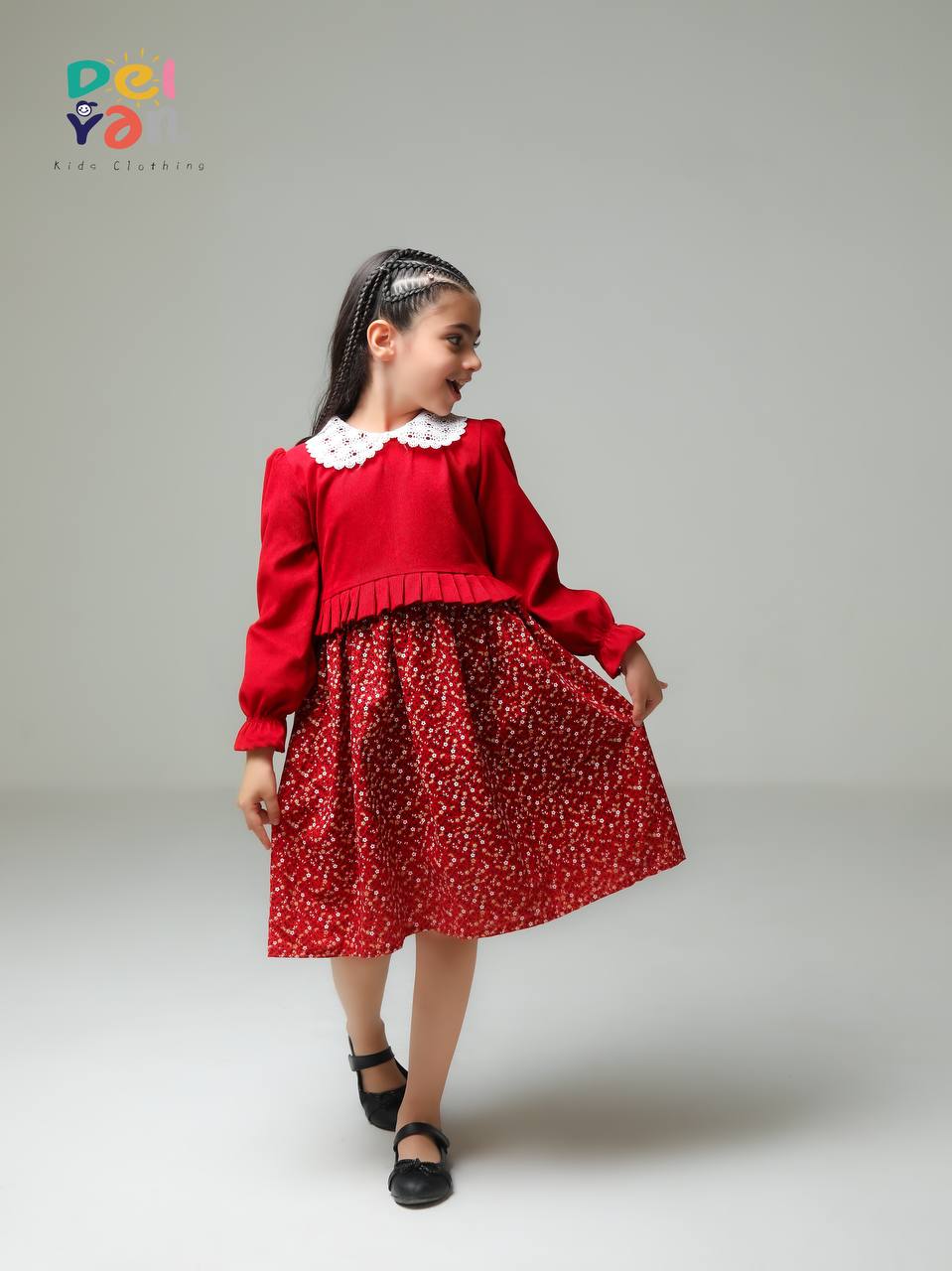 پیراهن دخترانه یلدایی کبریتی و تافته مناسب ۲سال تا ۱۴ سال