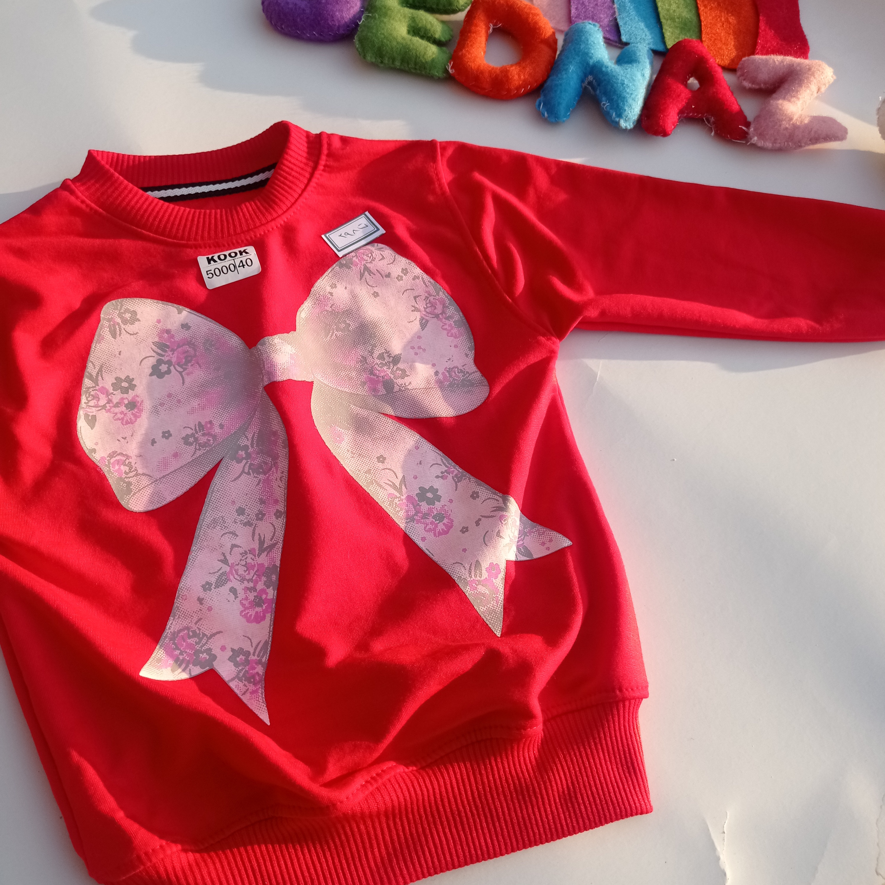بلوز تک دخترانه یلدایی طرح پاپیون اسپان دورس رنگ قرمز سایز 40تا55