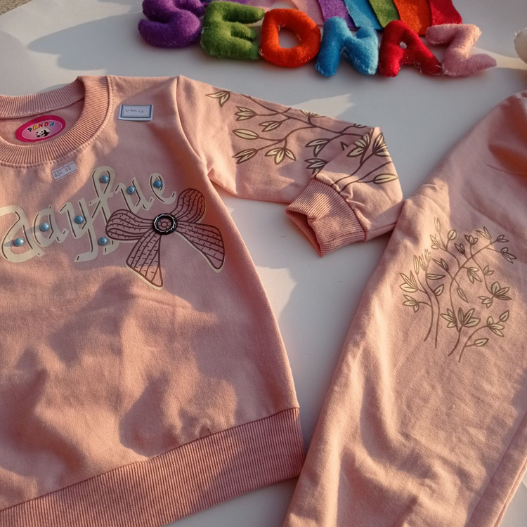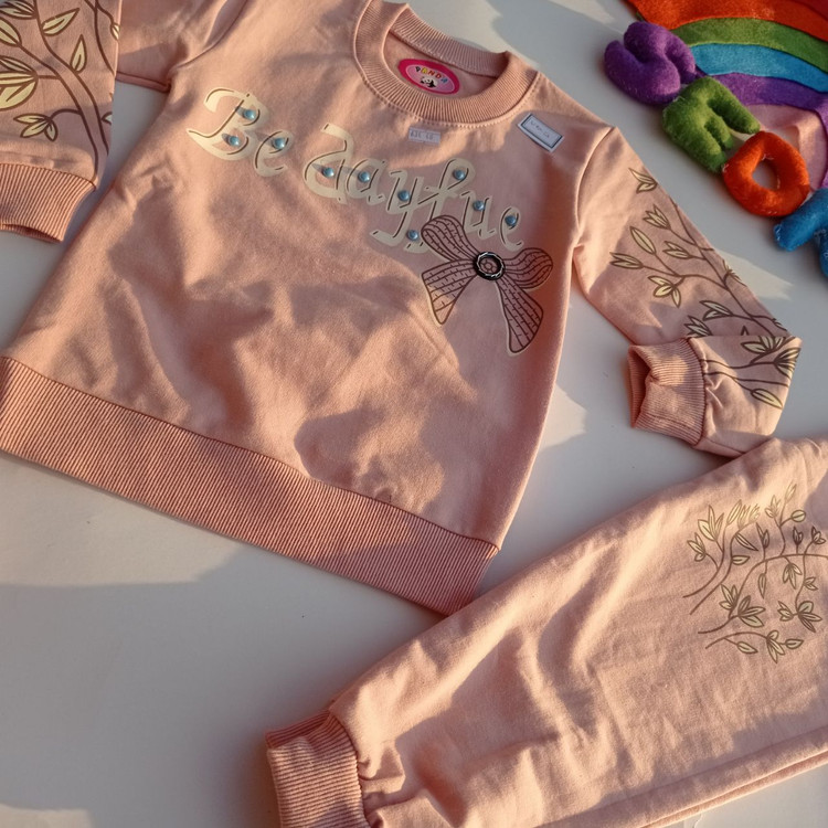 ست بلوز شلوار دخترانه مرواریدی جنس دورس پنبه لاکرا دار سایز 45-50-55