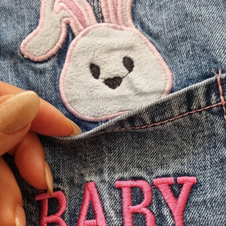 بیلر خرگوشی یه کار دخترانه و کیوت با جنس جین که با حاشیه های سنگشور جلوه ی خاصی به زیبایی محصول داده.سایزبندی داره و از یکسال تا 7 سال رو ساچورت میکنه