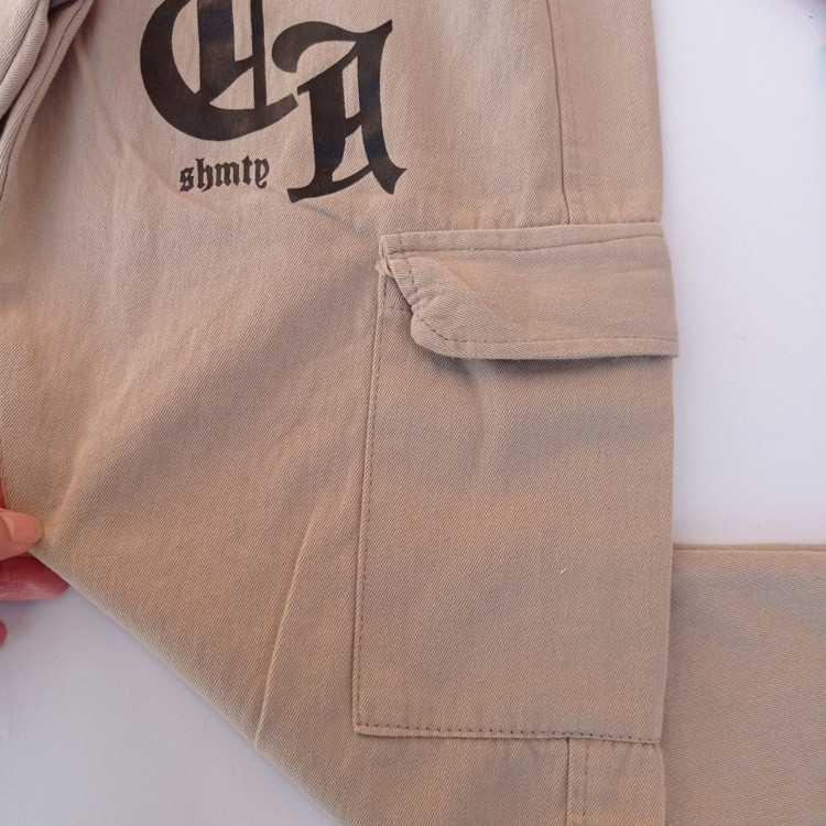 بالای شلوار دوعدد جیب کاربردی وروی شلوار از قسمت زانو هم داری جیب کاربردی میباشد
