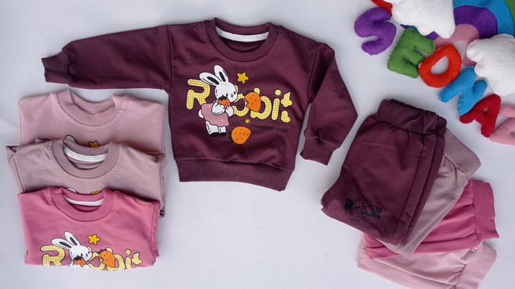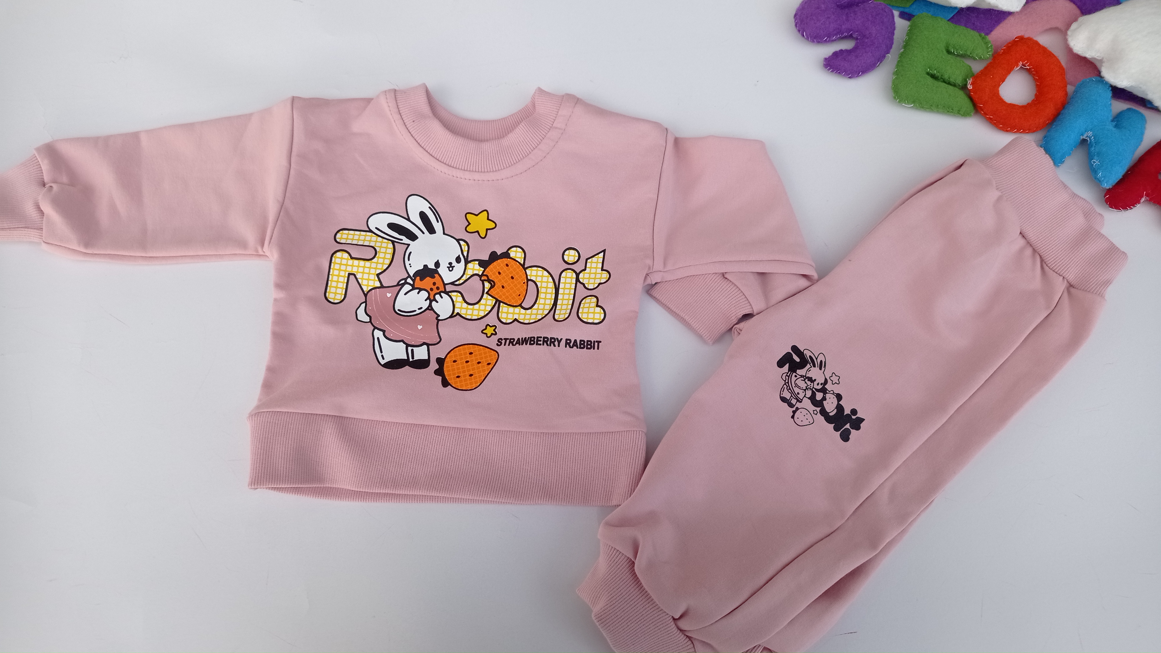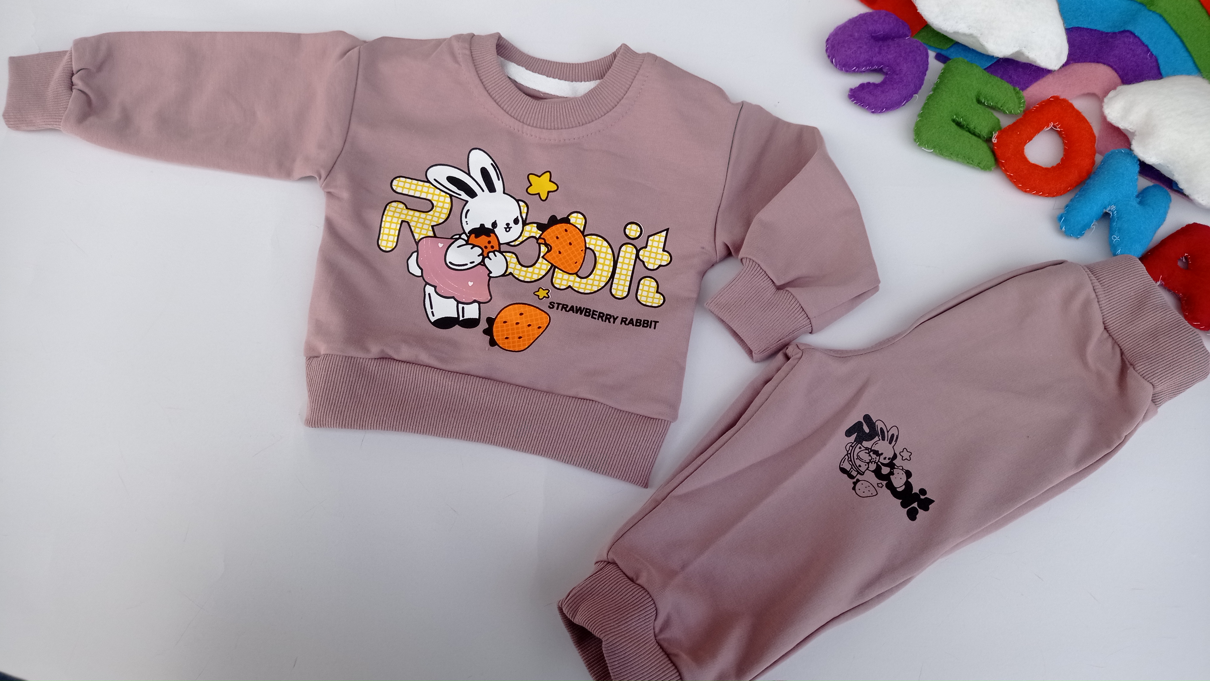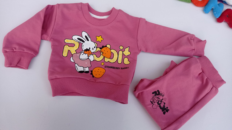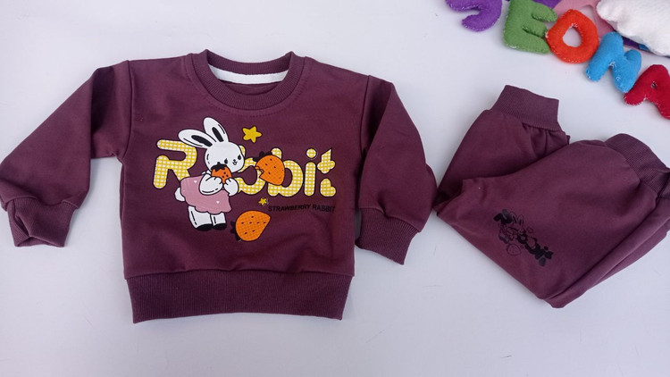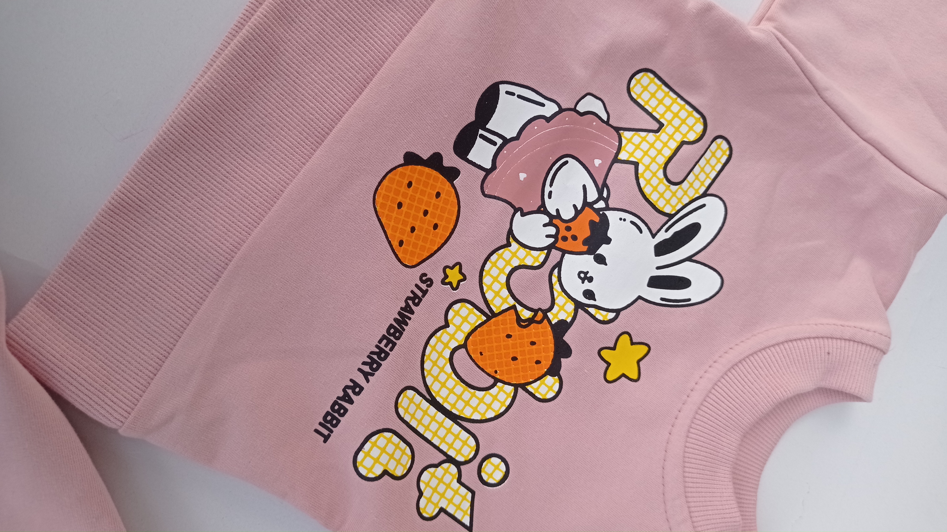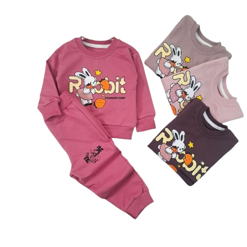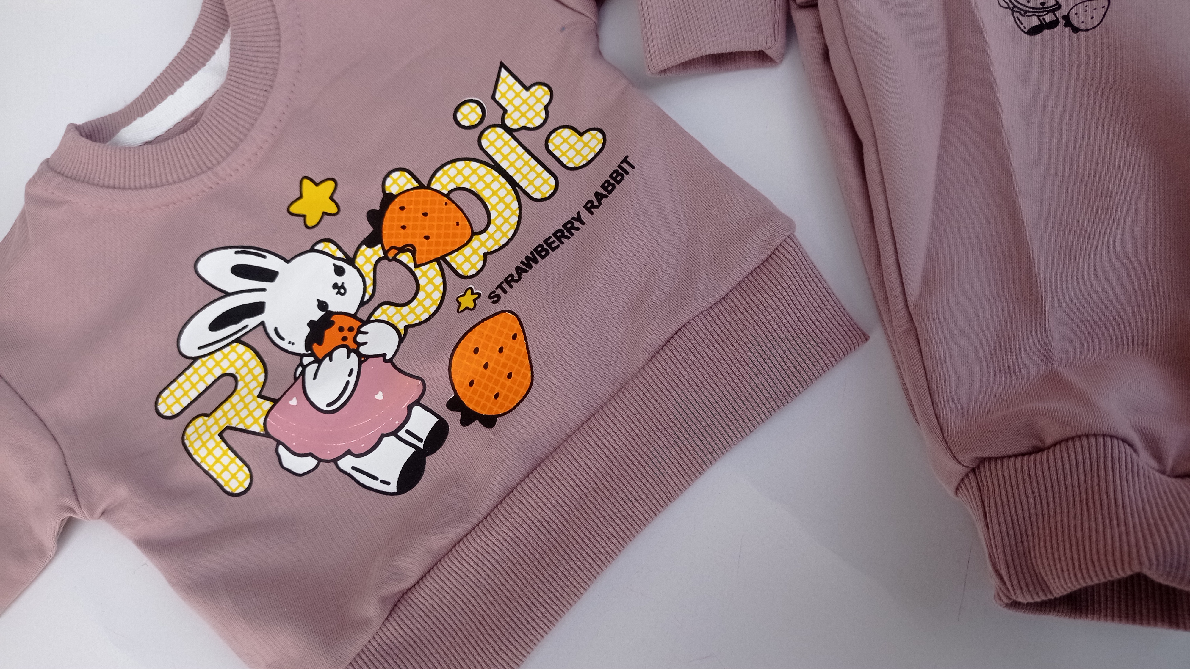 ست بلوز شلوار عیدانه دخترانه دورس پنبه خالص لاکرادار طرح خرگوش سایز 30/35